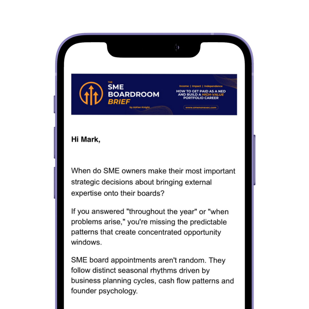 SME Non-Exec exists to solve that problem. We give you the roadmap, the positioning, the outreach system and the accountability to build a portfolio career that works... combining paid NED appointments, advisory roles, consulting and fractional leadership with ambitious, growing SMEs.